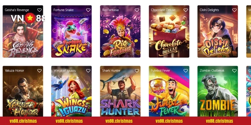 Hệ thống nổ hũ đa dạng: VN88 sở hữu hàng trăm tựa game từ các nhà phát triển nổi tiếng như Pragmatic Play, PG Soft, giúp người chơi có nhiều lựa chọn với giao diện đẹp mắt và tỷ lệ thắng cao.